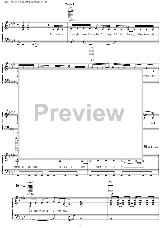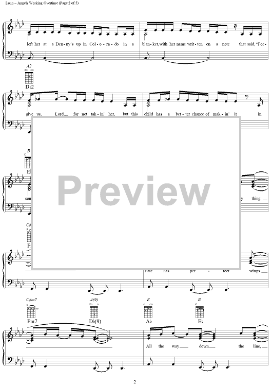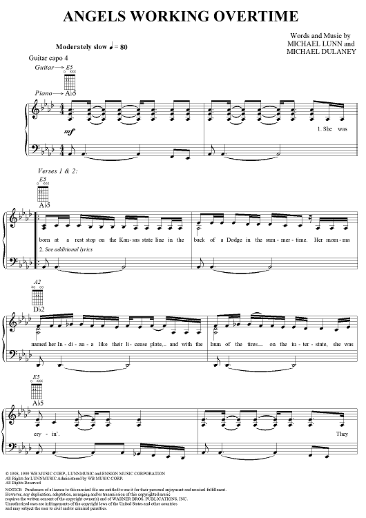 Digital Sheet Music for Angels Working Overtime by Deana Carter, Michael Lunn, Michael Dulaney scored for Piano/Vocal/Chords; id:118954