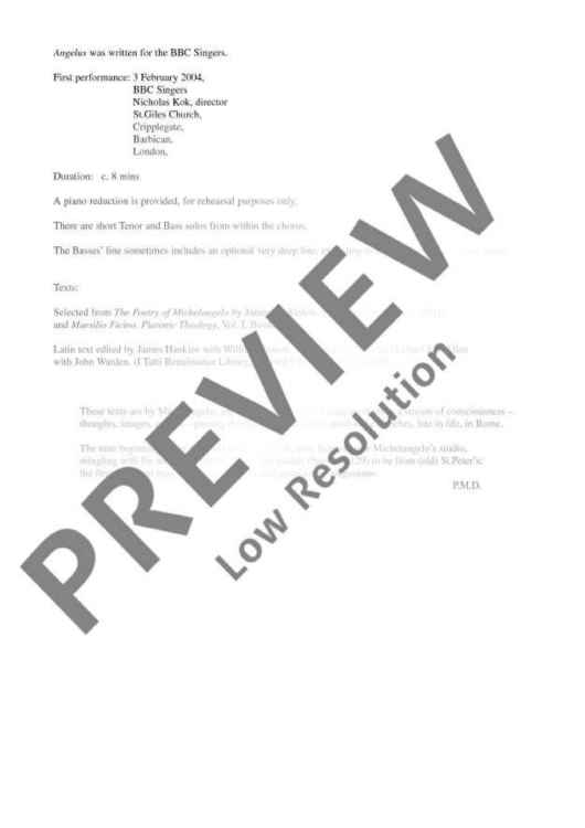"Angelus - Choral Score" Sheet Music by Sir Peter Maxwell Davies