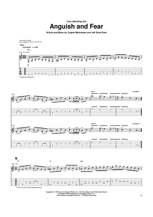 Digital Sheet Music for Anguish And Fear by Yngwie Malmsteen, Jeff Scott Soto scored for Guitar Tab; id:373364