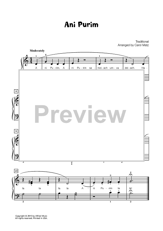Digital Sheet Music for Ani Purim by Carol Matz, Traditional scored for Piano; id:461265