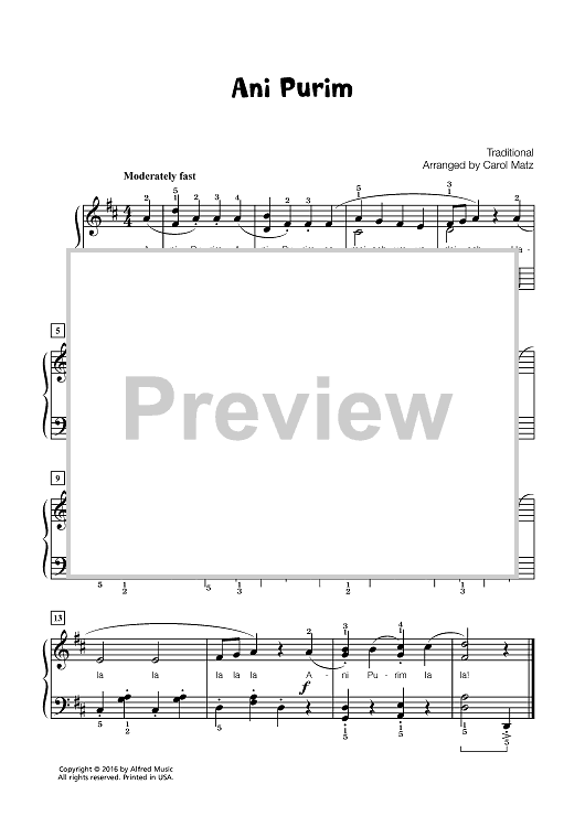 Digital Sheet Music for Ani Purim by Carol Matz, Traditional scored for Piano; id:461309
