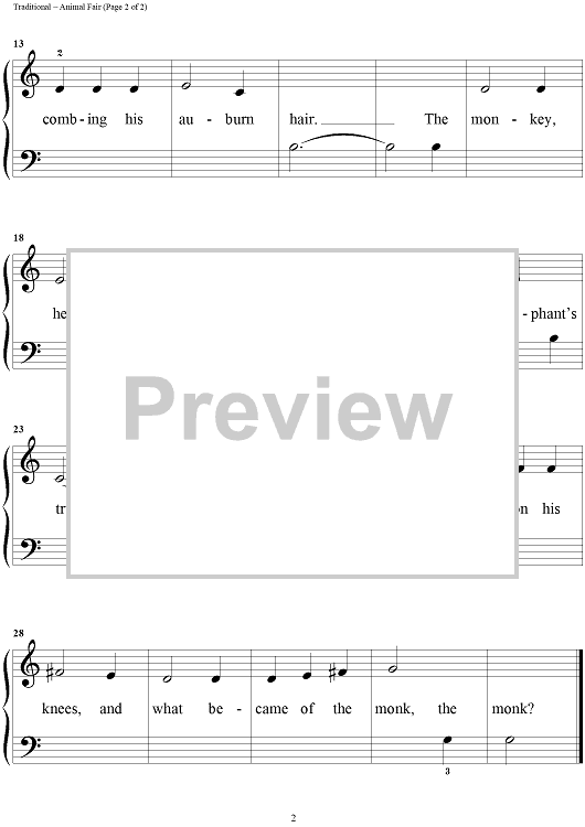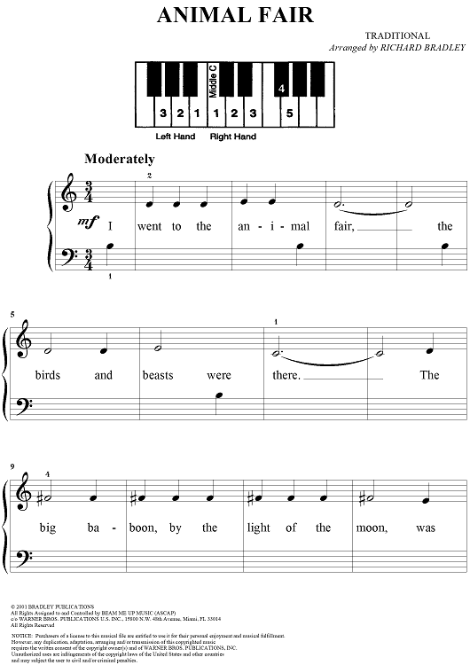 Digital Sheet Music for Animal Fair by Richard Bradley, Traditional scored for Five Finger Piano/Vocal; id:283568