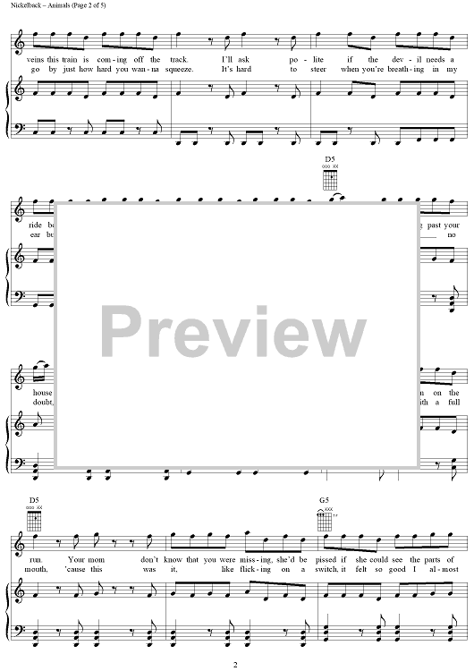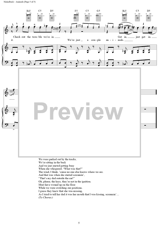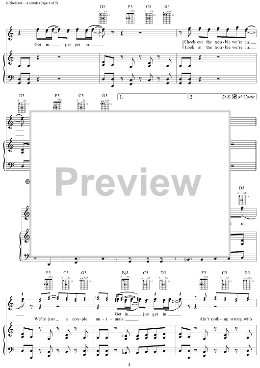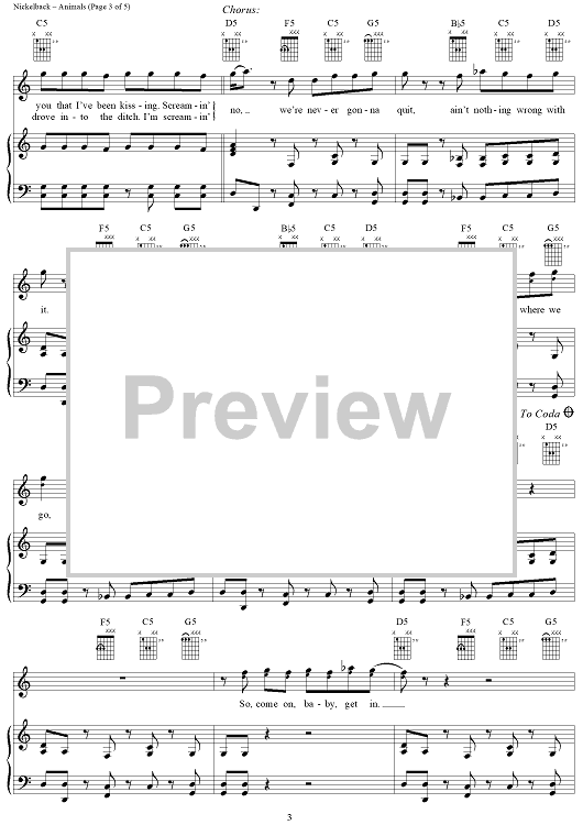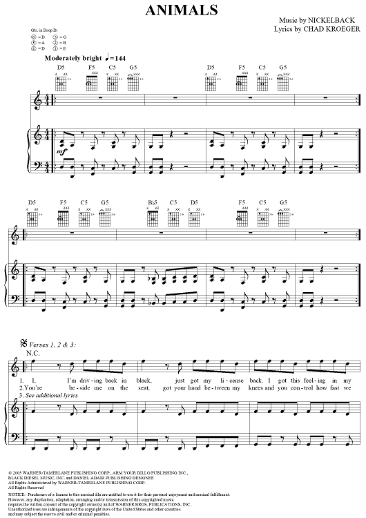 Digital Sheet Music for Animals by Nickelback, Chad Kroeger scored for Piano/Vocal/Chords; id:321594