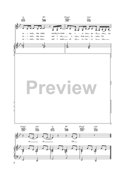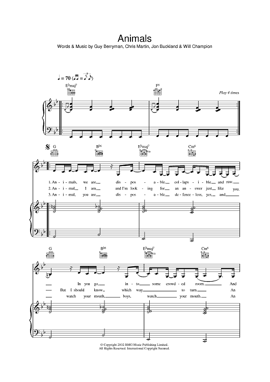 Digital Sheet Music for Animals by Chris Martin, Coldplay, Jonny Buckland, Guy Berryman scored for Piano/Vocal/Chords; id:396823