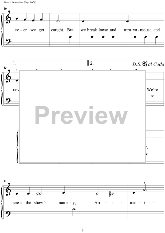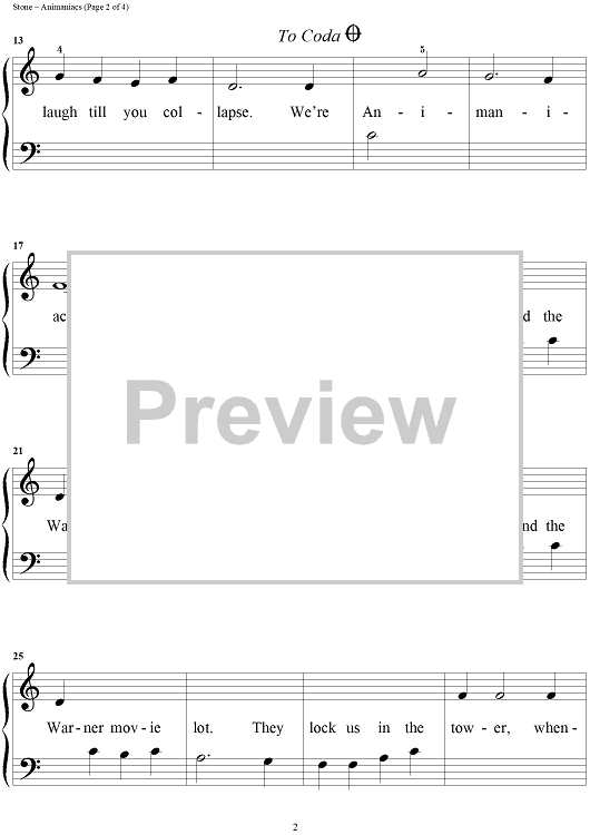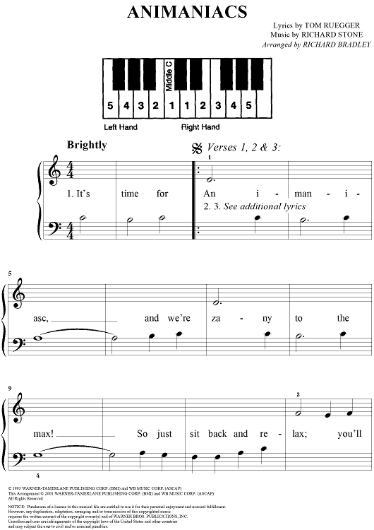 Digital Sheet Music for Animaniacs by Richard Bradley, Richard Stone, Tom Ruegger scored for Five Finger Piano/Vocal; id:283574