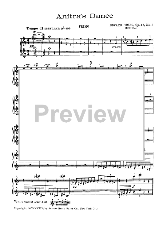 Digital Sheet Music for Anitra's Dance by Edvard Grieg scored for 1 Piano, 4 Hands; id:461053