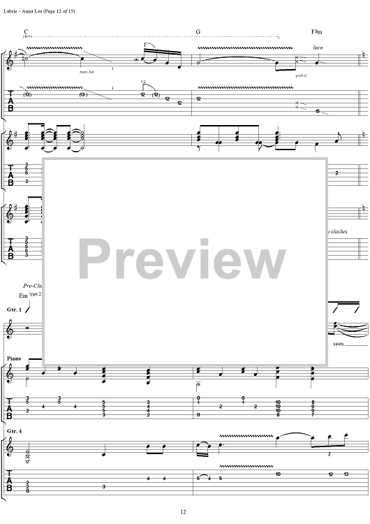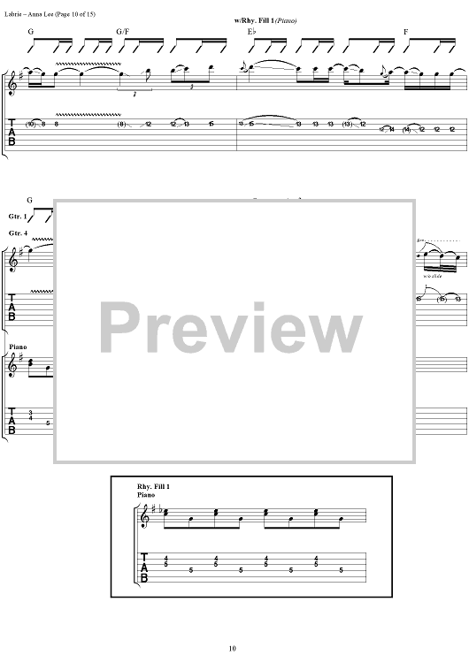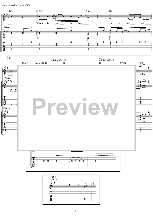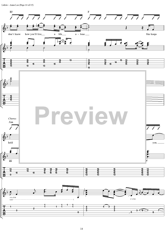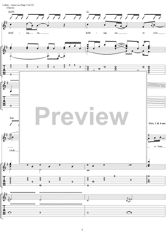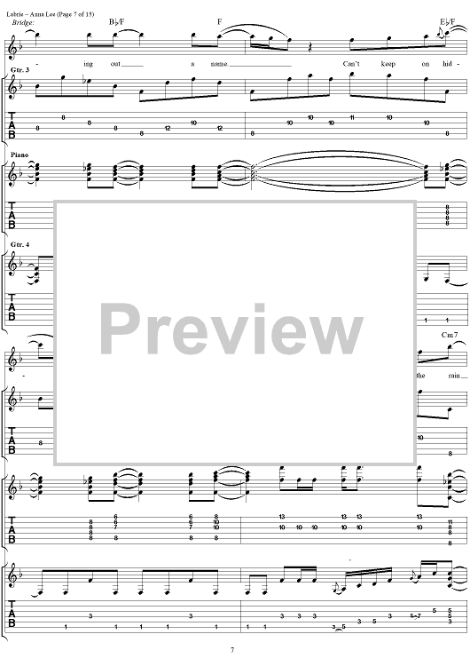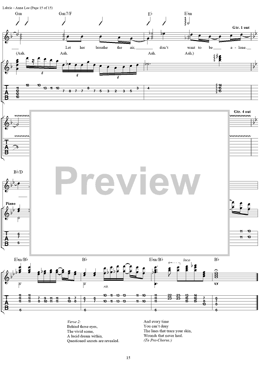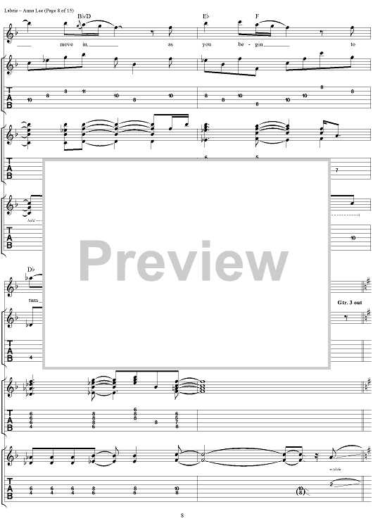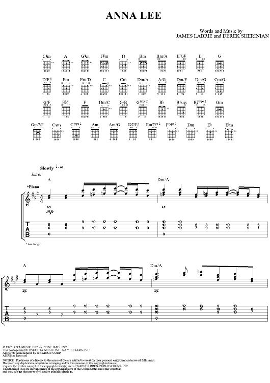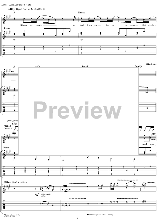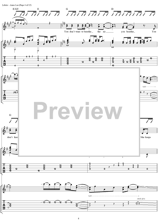 Digital Sheet Music for Anna Lee by Derek Sherinian, Dream Theater, James LaBrie scored for Guitar Tab/Vocal; id:112333