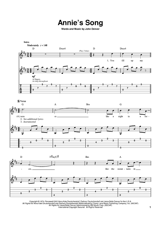 Digital Sheet Music for Annie's Song by John Denver scored for Guitar Tab; id:374247