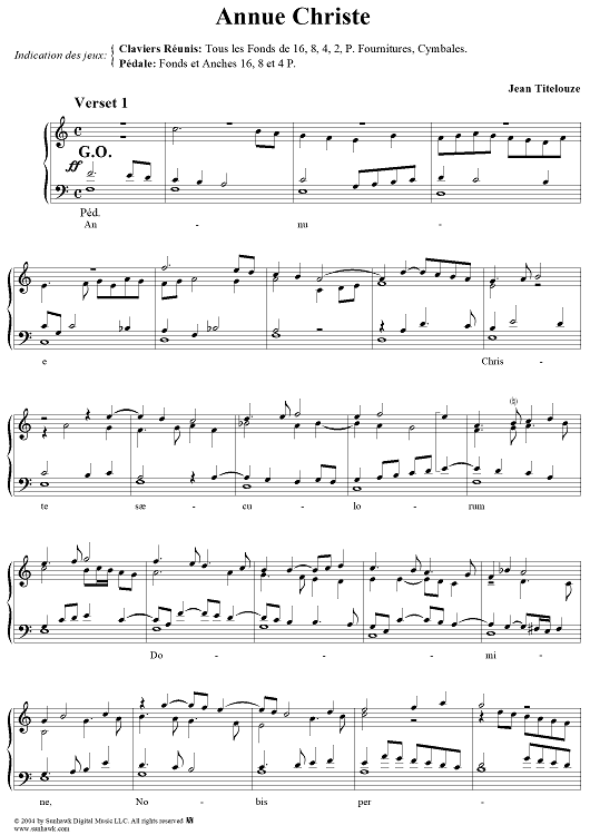"Annue Christe (2 versets and amen)" Sheet Music by Jean Titelouze