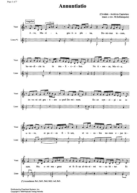 Digital Sheet Music for Annuntiatio by , Marco Sofianopulo, Traditional scored for Choir/Lute; id:329052