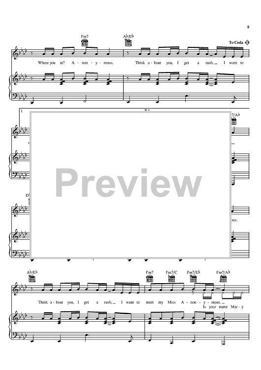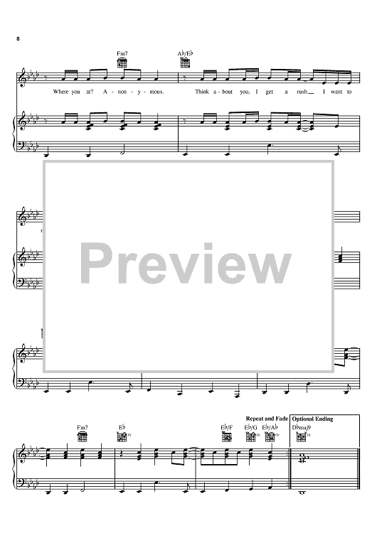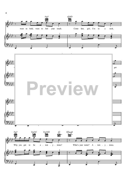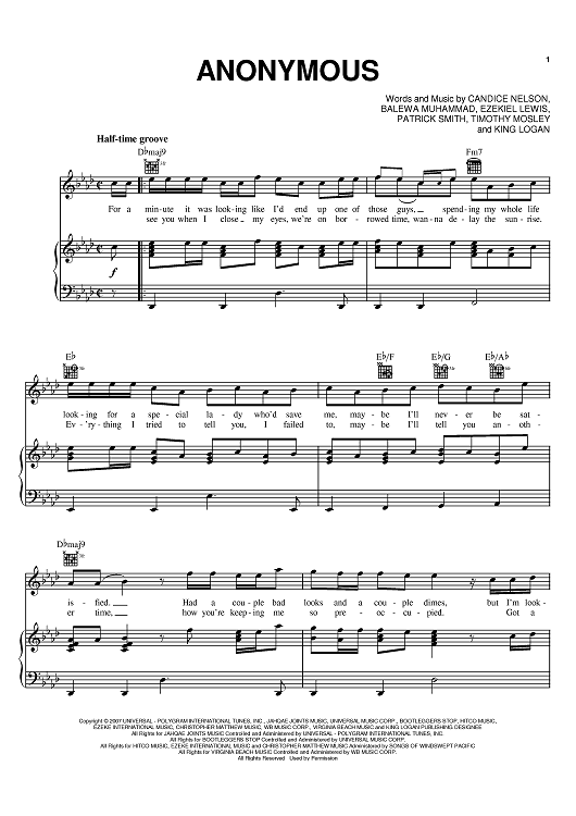 Digital Sheet Music for Anonymous by Timbaland, Timothy Mosley, Balewa Muhammad, Ezekiel Lewis, King Logan, Candice Nelson, Patrick Smith, Bobby Valentino scored for Piano/Vocal/Chords; id:397905