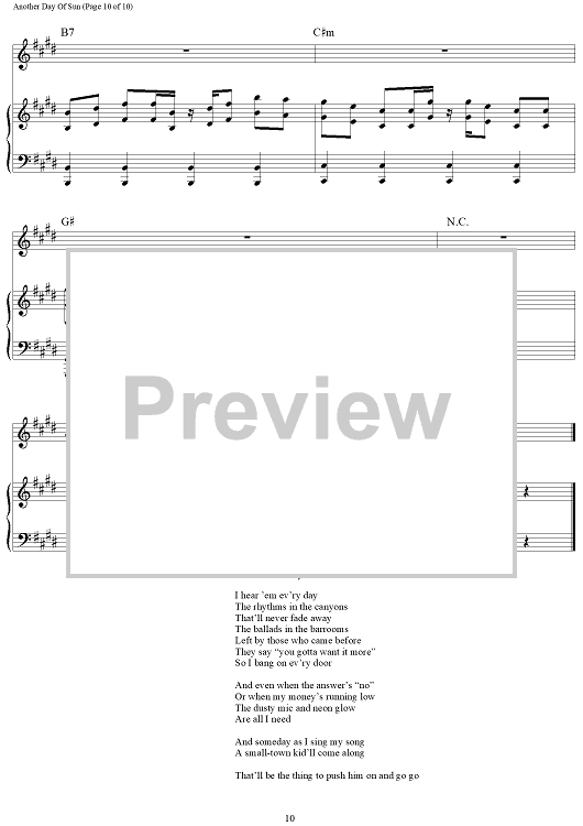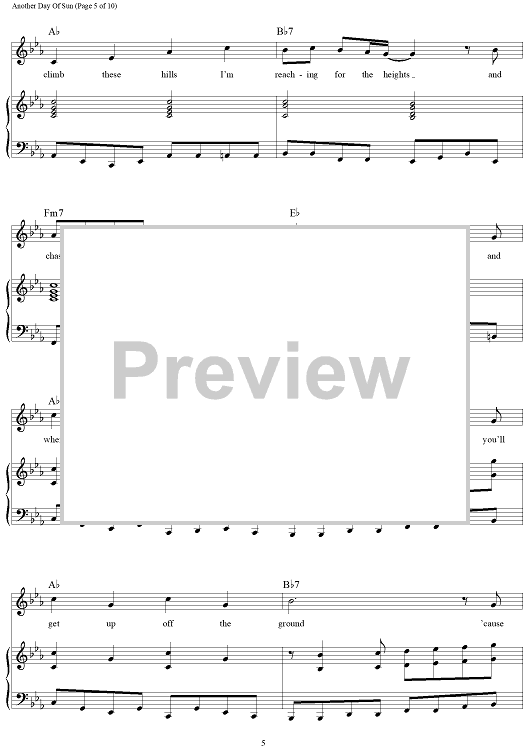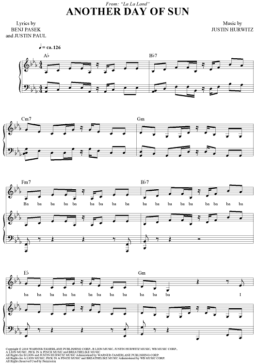 Digital Sheet Music for Another Day Of Sun - from La La Land by Benj Pasek, Justin Paul, Justin Hurwitz scored for Piano/Vocal/Chords; id:463642