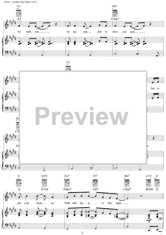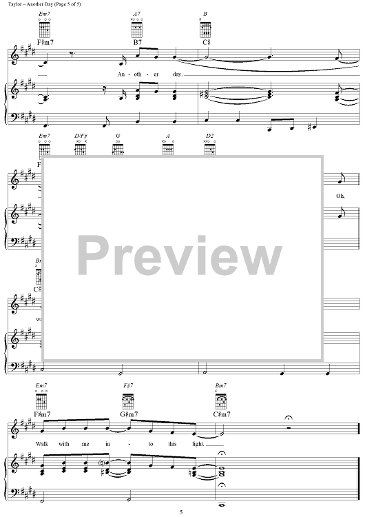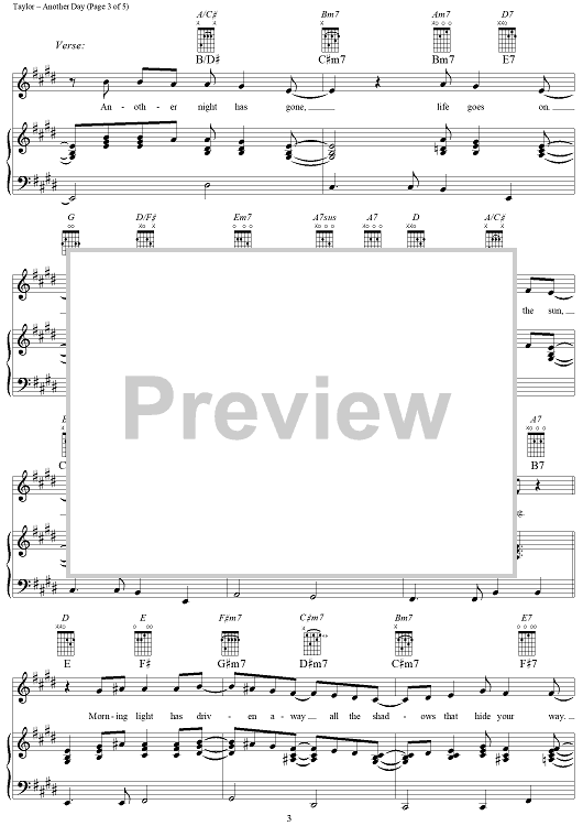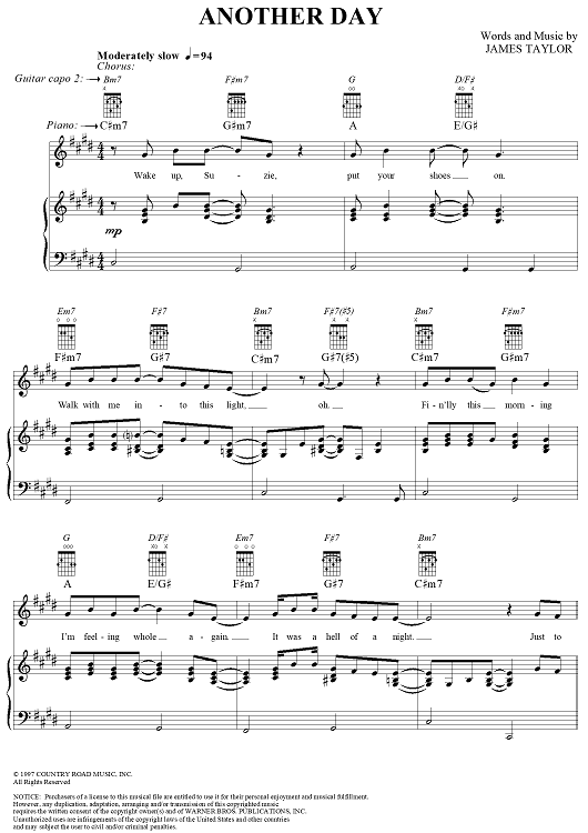 Digital Sheet Music for Another Day by James Taylor scored for Piano/Vocal/Chords; id:286046