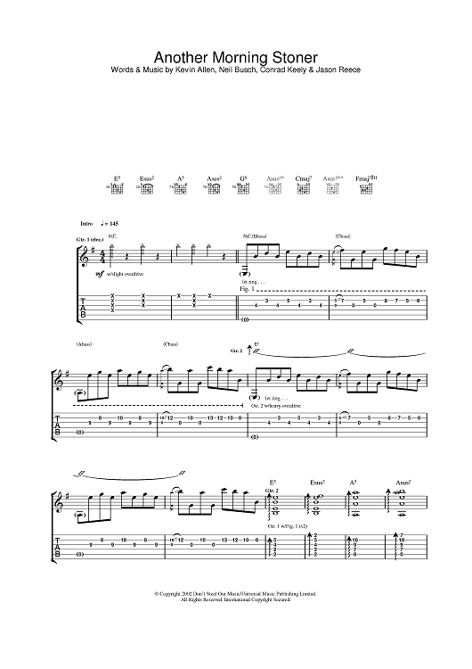 Digital Sheet Music for Another Morning Stoner by And You Will Know Us By The Trail Of Dead, Conrad Keely, Jason Reece, Neil Busch, Kevin Allen scored for Guitar Tab; id:377970