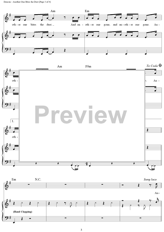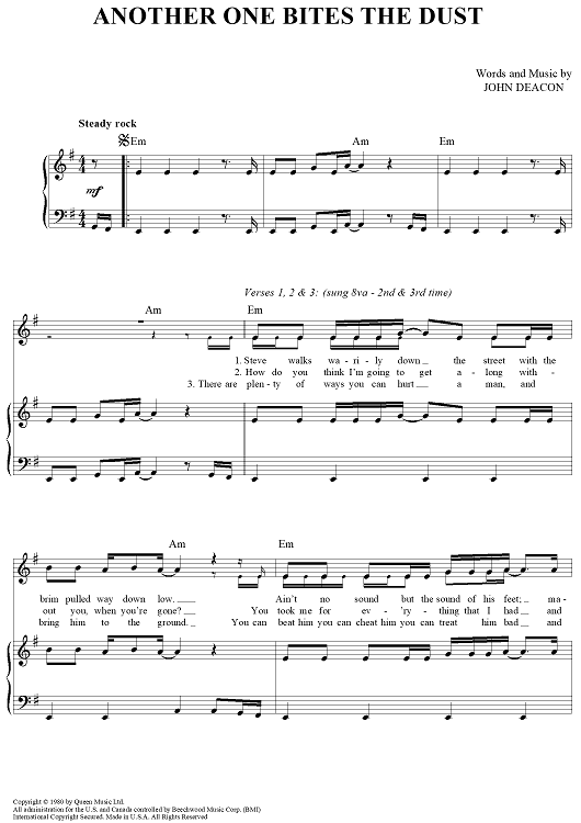 Digital Sheet Music for Another One Bites the Dust by Queen, John Deacon scored for Piano/Vocal/Chords; id:366095