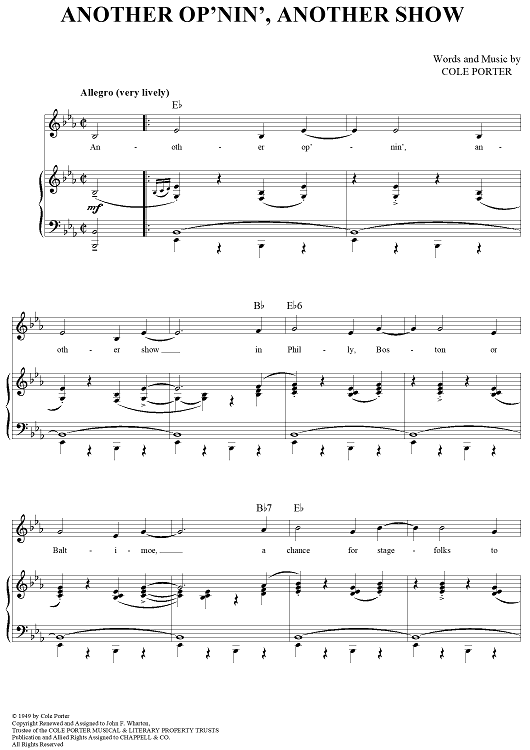 Digital Sheet Music for Another Op'nin', Another Show by Cole Porter scored for Piano/Vocal/Chords; id:297854