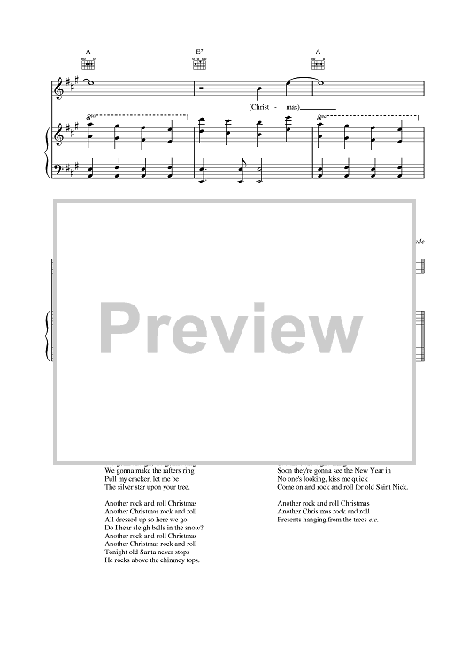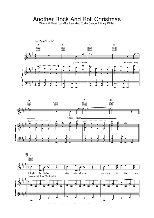 Digital Sheet Music for Another Rock And Roll Christmas by Gary Glitter scored for Piano/Vocal/Chords; id:376904