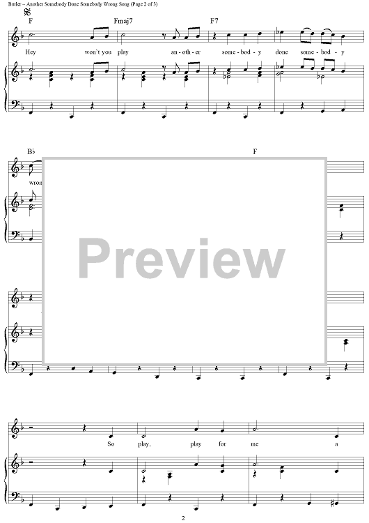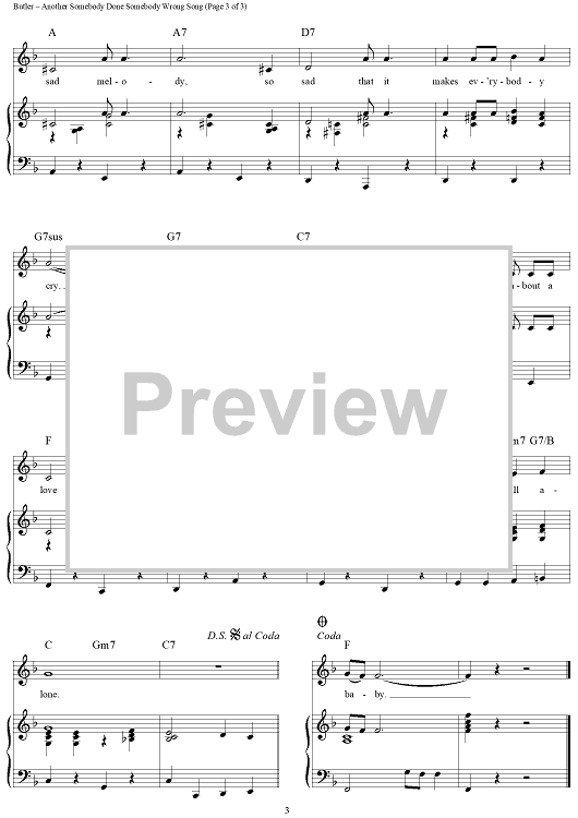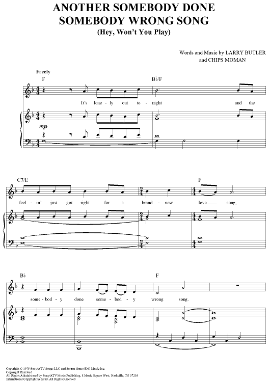 "Another Somebody Done Somebody Wrong Song" Sheet Music by B. J. Thomas