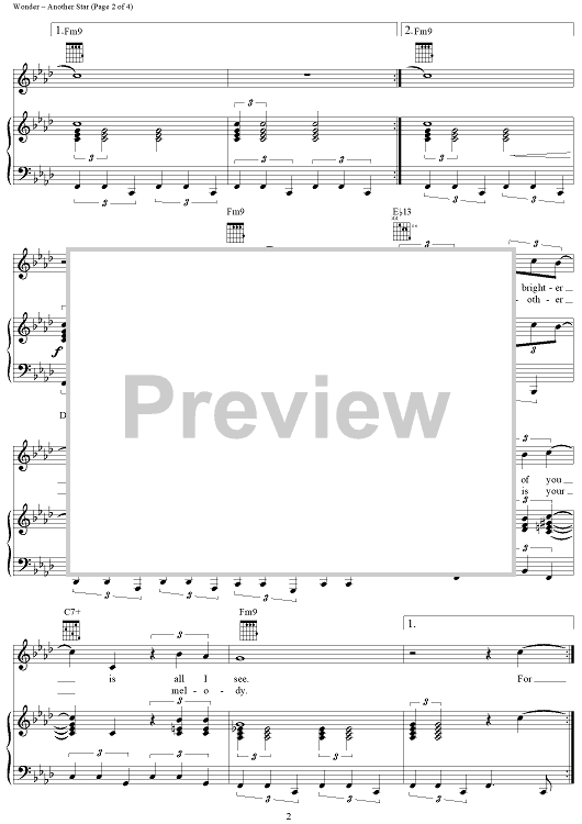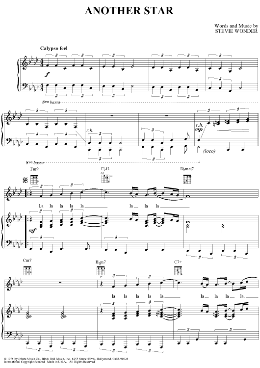 Digital Sheet Music for Another Star by Stevie Wonder scored for Piano/Vocal/Chords; id:366750