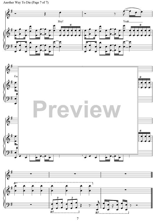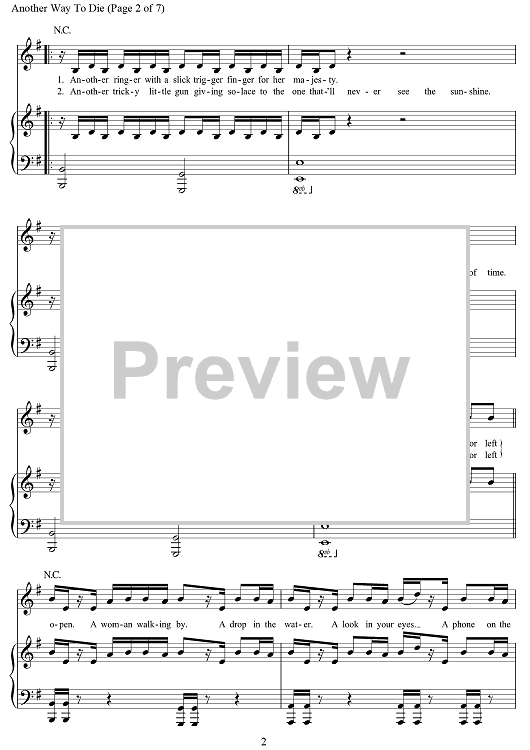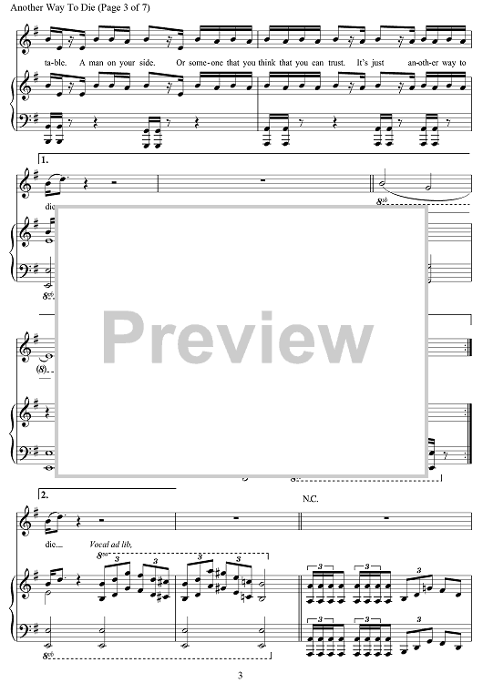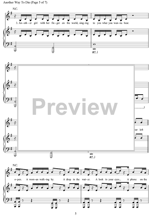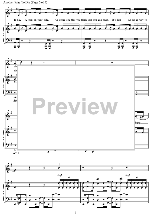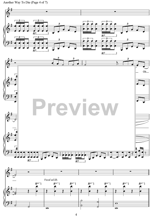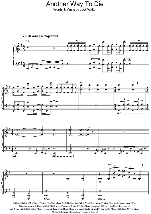 Digital Sheet Music for Another Way To Die (from Quantum Of Solace) by Jack White scored for Piano/Vocal/Chords; id:469918