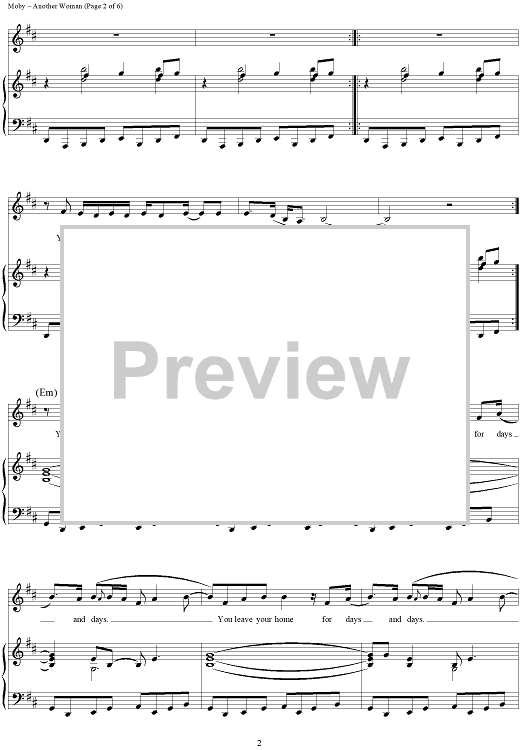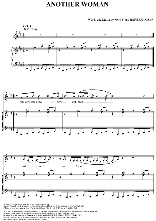 Digital Sheet Music for Another Woman by Moby, Barbera Ozen scored for Piano/Vocal/Chords; id:293238