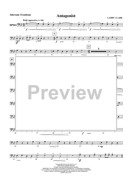"Antagonist - Alternate Trombone" Sheet Music by Larry Clark