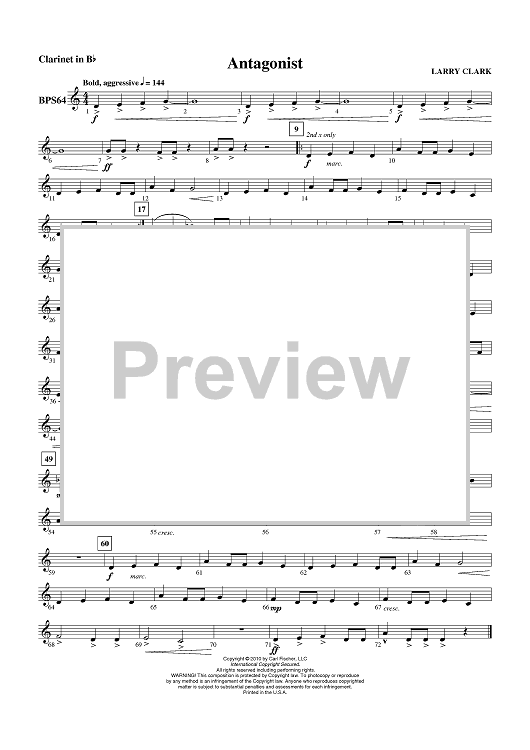 "Antagonist - Clarinet in B-flat" Sheet Music by Larry Clark