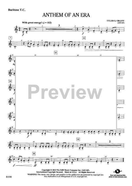"Anthem of an Era - Baritone TC" Sheet Music by Tyler S. Grant