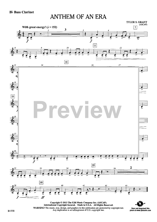 Digital Sheet Music for Anthem of an Era - Bb Bass Clarinet by Tyler S. Grant scored for Concert Band; id:439283
