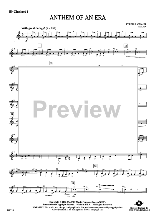 "Anthem of an Era - Bb Clarinet 1" Sheet Music by Tyler S. Grant