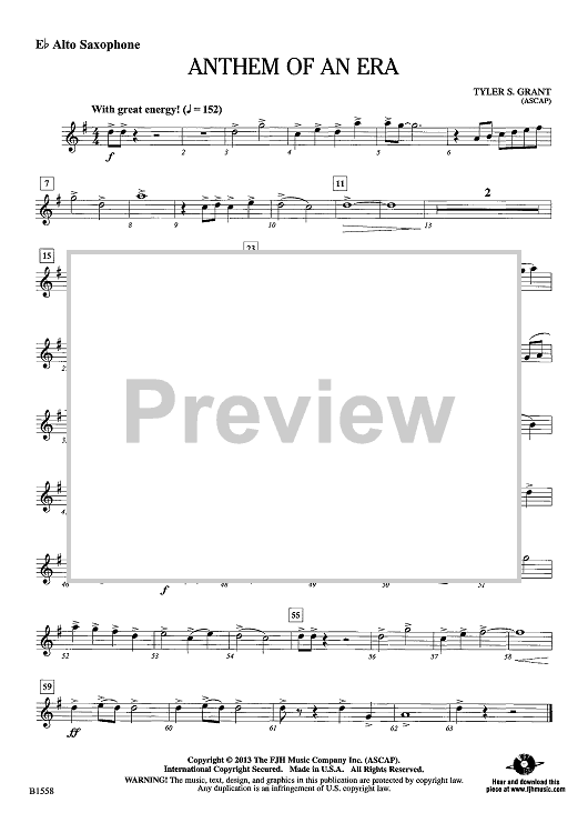 Digital Sheet Music for Anthem of an Era - Eb Alto Sax by Tyler S. Grant scored for Concert Band; id:439284