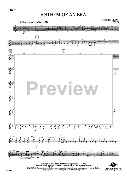 Digital Sheet Music for Anthem of an Era - F Horn by Tyler S. Grant scored for Concert Band; id:439289