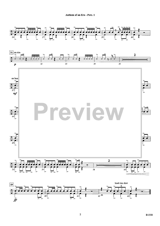 Digital Sheet Music for Anthem of an Era - Percussion 1 by Tyler S. Grant scored for Concert Band; id:439296
