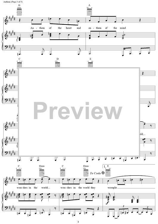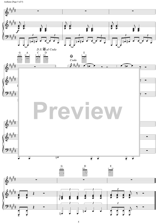 Digital Sheet Music for Anthem by Rush, Geddy Lee, Alex Lifeson, Neil Peart scored for Piano/Vocal/Chords; id:124271