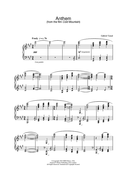 "Anthem" Sheet Music by Gabriel Yared