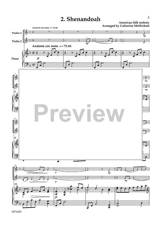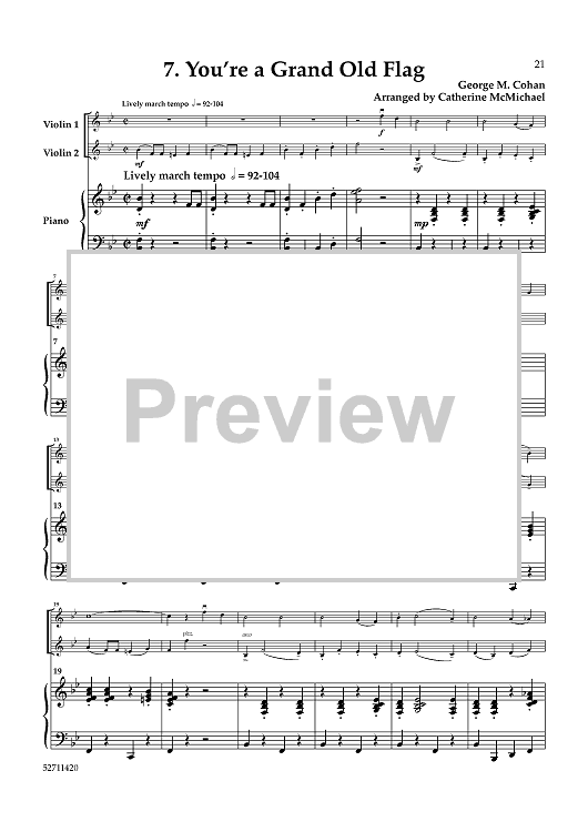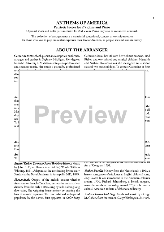 Digital Sheet Music for Anthems of America for Two Violins and Piano - Piano by , Various, Catherine McMichael scored for 2 Violins and Piano; id:464458
