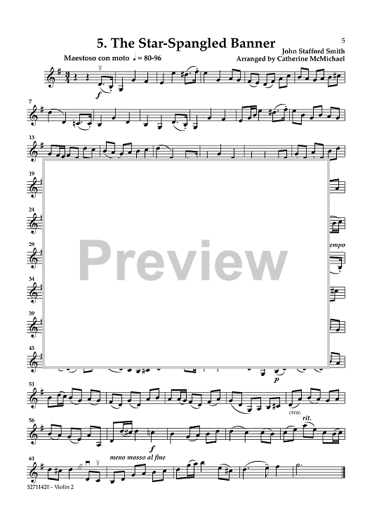 Digital Sheet Music for Anthems of America for Two Violins and Piano - Violin 2 by , Various, Catherine McMichael scored for 2 Violins and Piano; id:464460