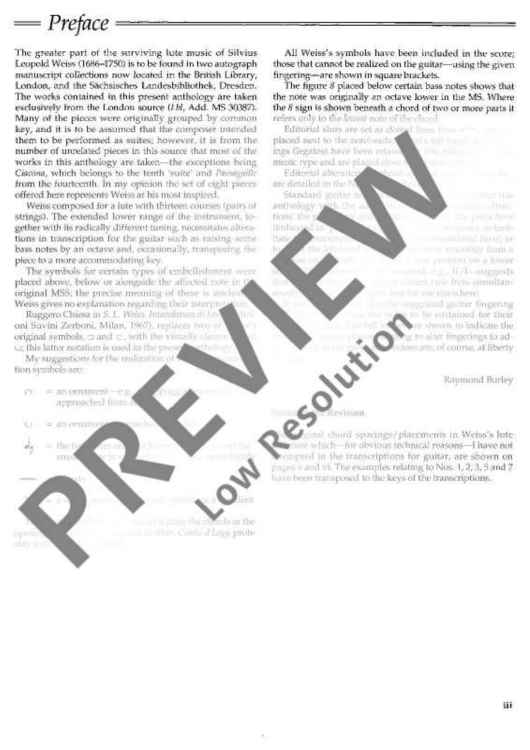 "Anthology of Selected Pieces" Sheet Music by Silvius Leopold Weiss