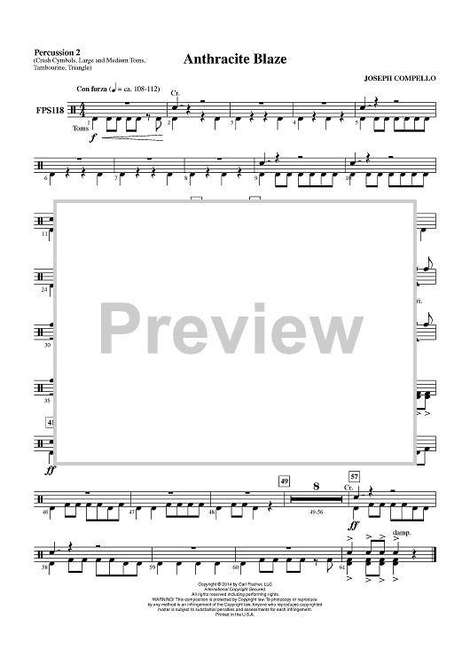 Digital Sheet Music for Anthracite Blaze - Percussion 2 by Joseph Compello scored for Concert Band; id:451377