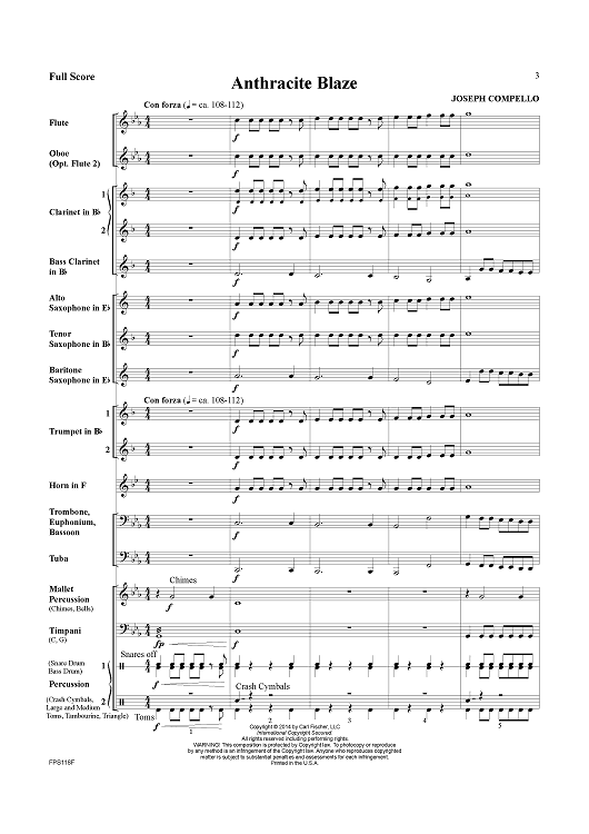 "Anthracite Blaze - Score" Sheet Music by Joseph Compello