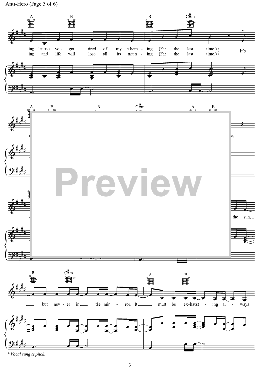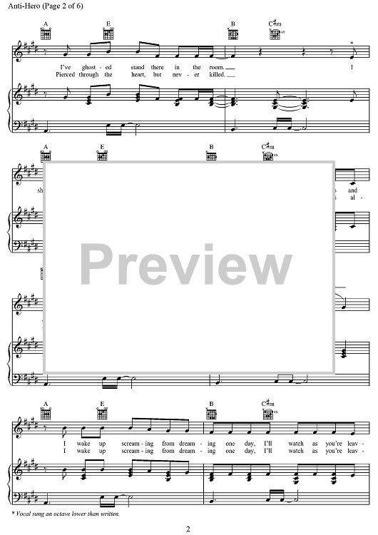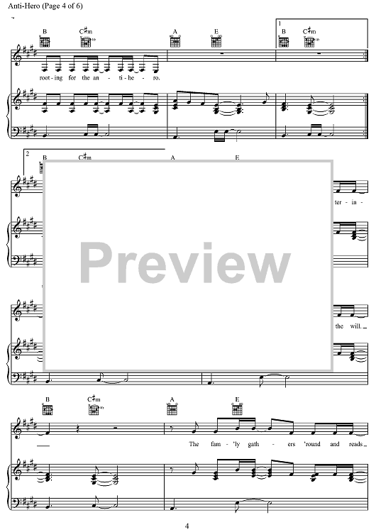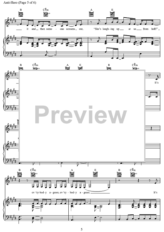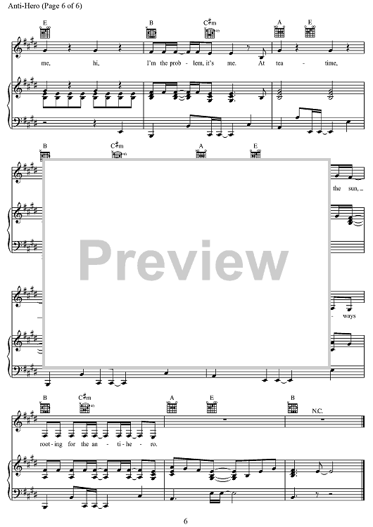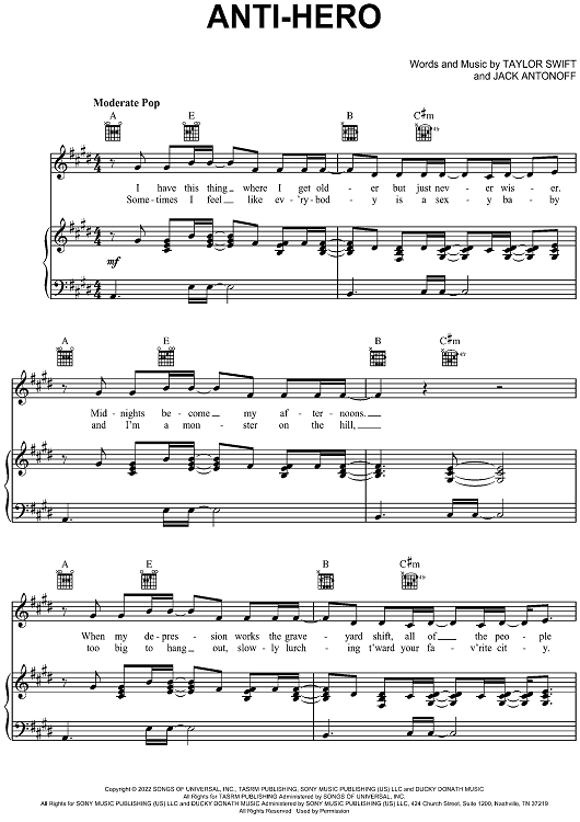 Digital Sheet Music for Anti-Hero by Taylor Swift, Jack Antonoff scored for Piano/Vocal/Chords; id:498157