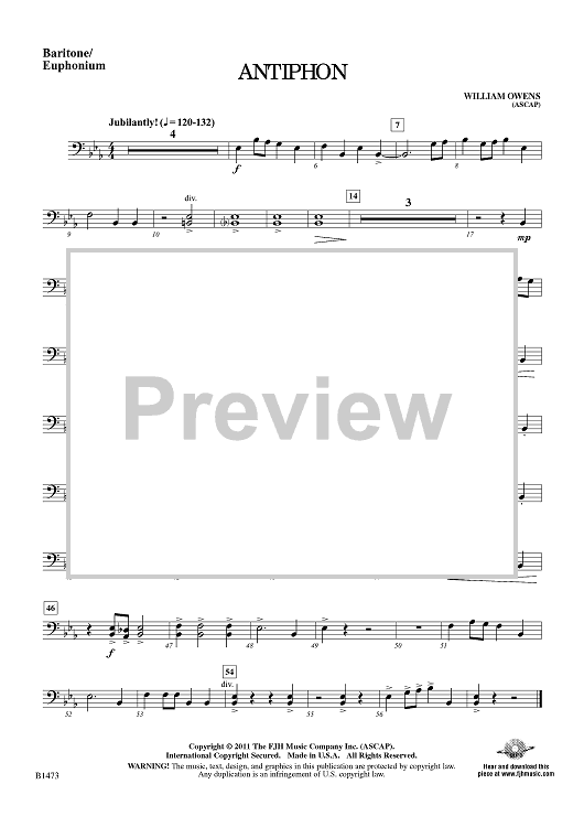 "Antiphon - Baritone/Euphonium" Sheet Music by William Owens