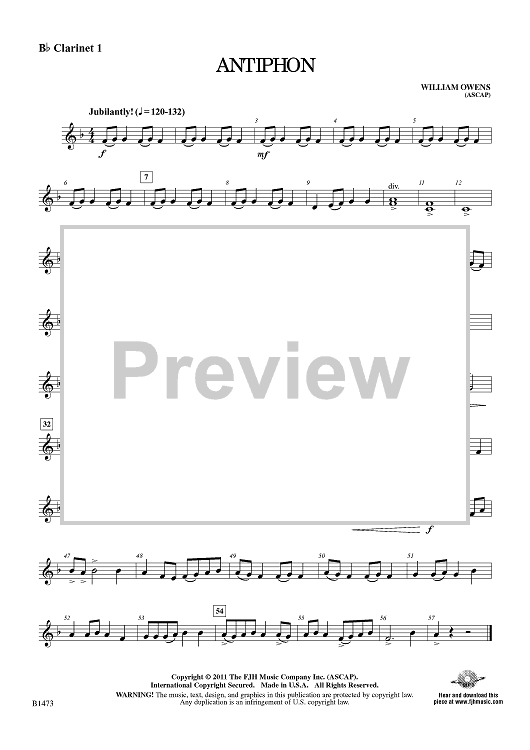 "Antiphon - Bb Clarinet 1" Sheet Music by William Owens