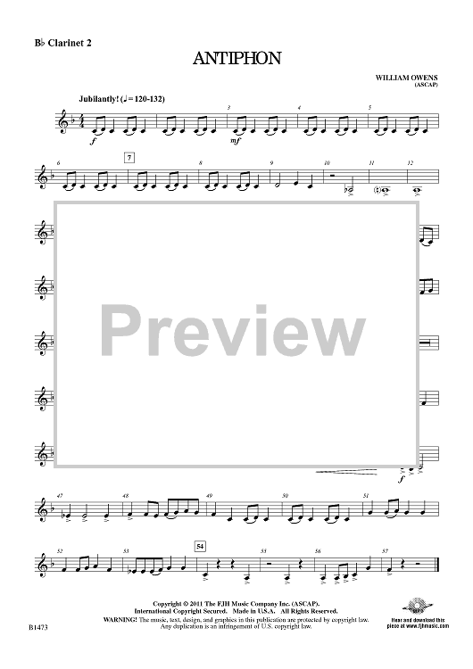 "Antiphon - Bb Clarinet 2" Sheet Music by William Owens