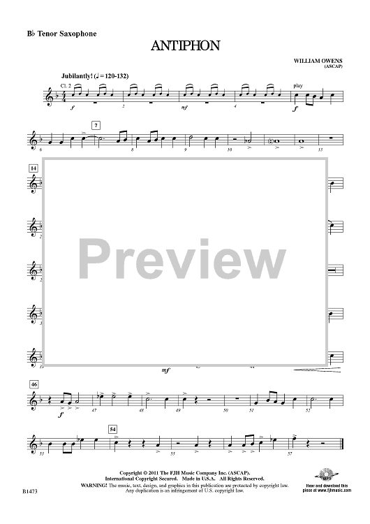 "Antiphon - Bb Tenor Sax" Sheet Music by William Owens