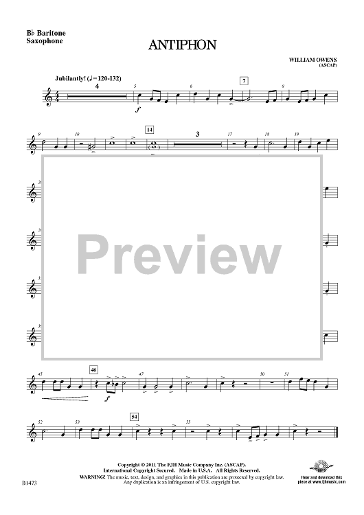 "Antiphon - Eb Baritone Sax" Sheet Music by William Owens