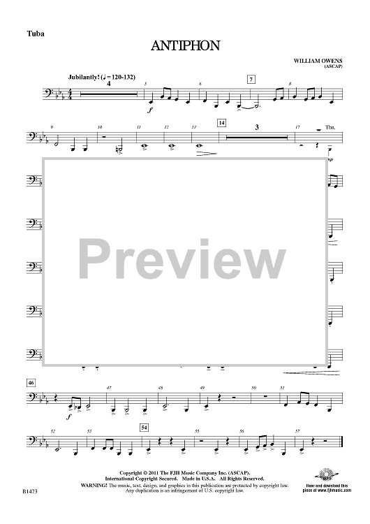 Digital Sheet Music for Antiphon - Tuba by William Owens scored for Concert Band; id:425755