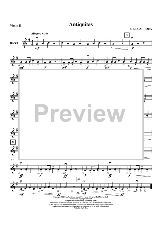 "Antiquitas - Violin 2" Sheet Music by Bill Calhoun
