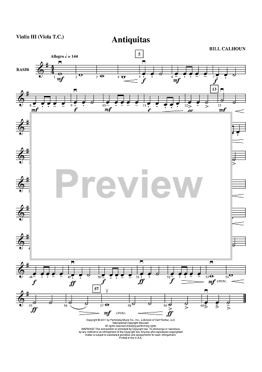 "Antiquitas - Violin 3 (Viola T.C.)" Sheet Music by Bill Calhoun