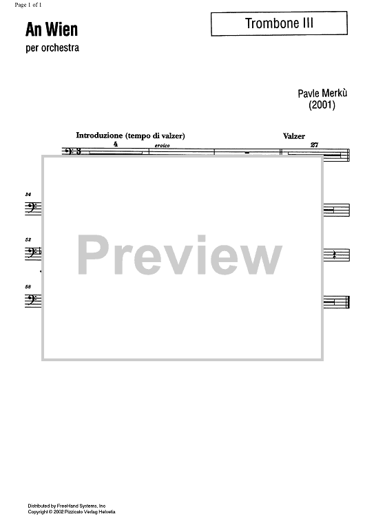 Digital Sheet Music for AnWien - Bass Trombone by , Pavle Merkù scored for Orchestra; id:351124